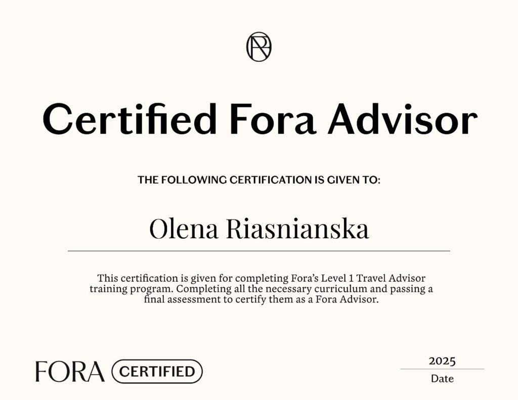 As a Fora travel advisor, I’m proud to partner with a modern agency that’s changing the way people experience travel. Fora’s innovative approach connects my clients to over 40,000 trusted global partners, offering exclusive rates, VIP perks, and special benefits unavailable through standard booking platforms. With a blend of advanced technology and personalized service, I’m able to create seamless and truly memorable journeys—making every trip uniquely rewarding.